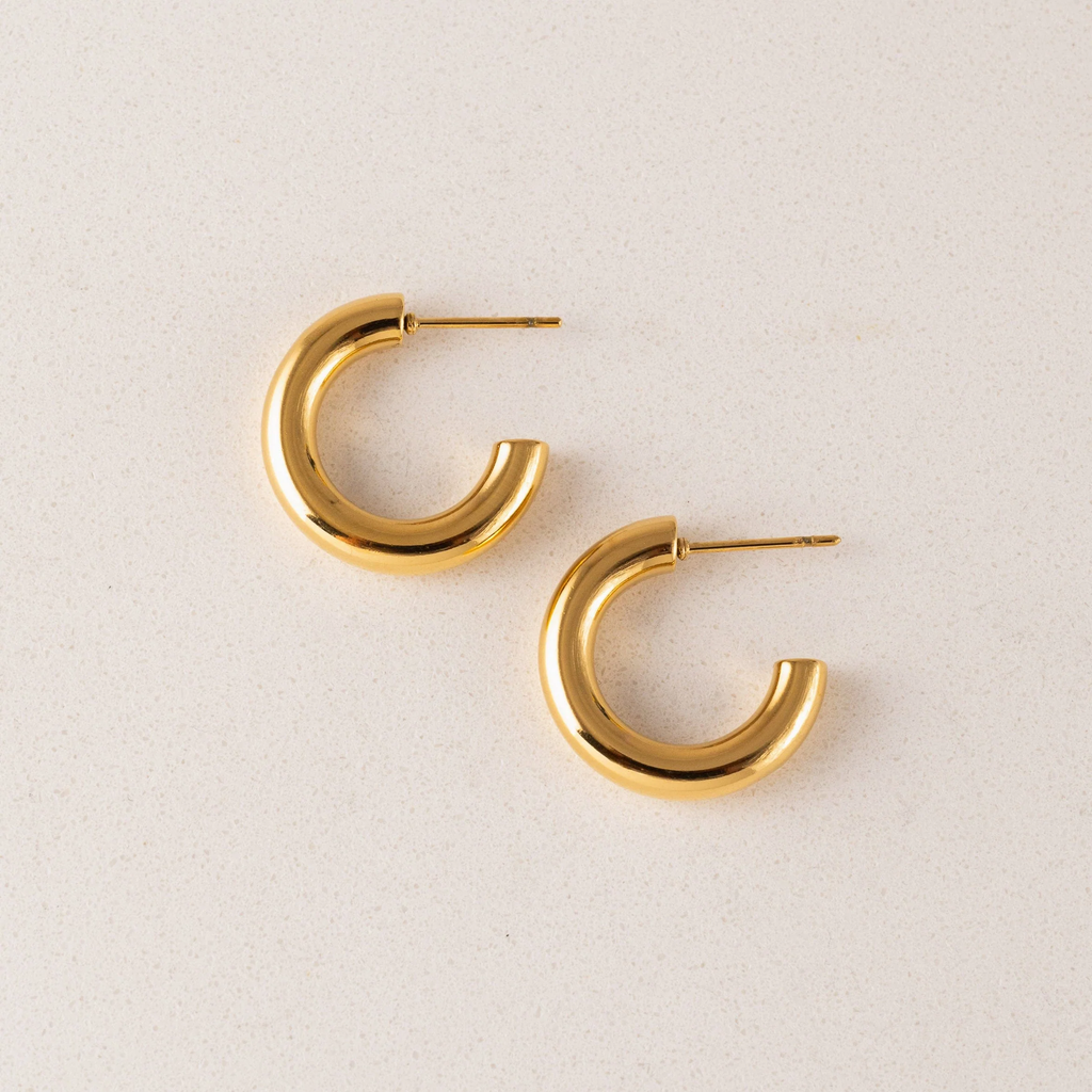 That Friday feeling, now in hoop form. Made with PVD and stainless steel, you can wear these waterproof earrings anywhere.