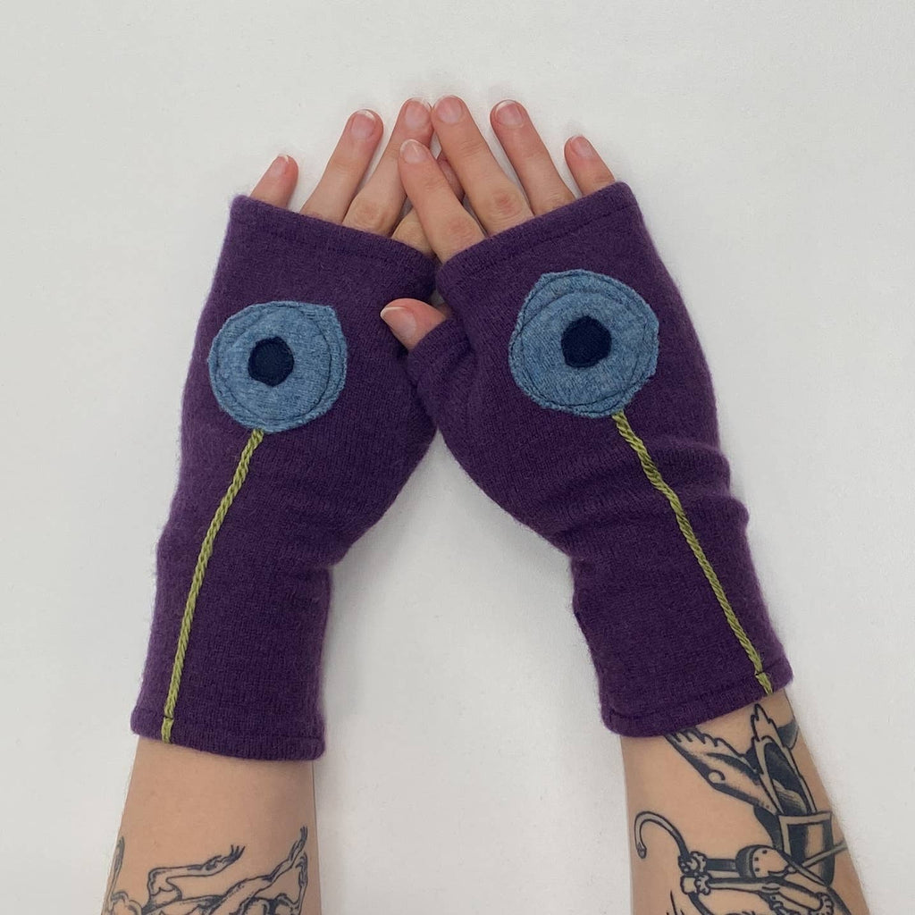 Fingerless Cashmere Gloves-Coneflower: Fuchsia on Blue / One Size Fits Most