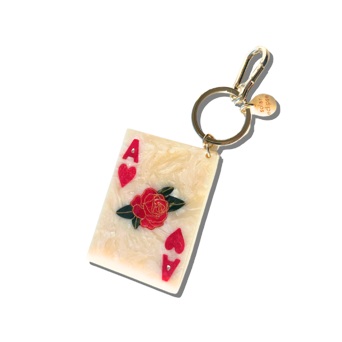 Solar Eclipse Bag Charm + Keychain- Hand-painted Ace of Hearts