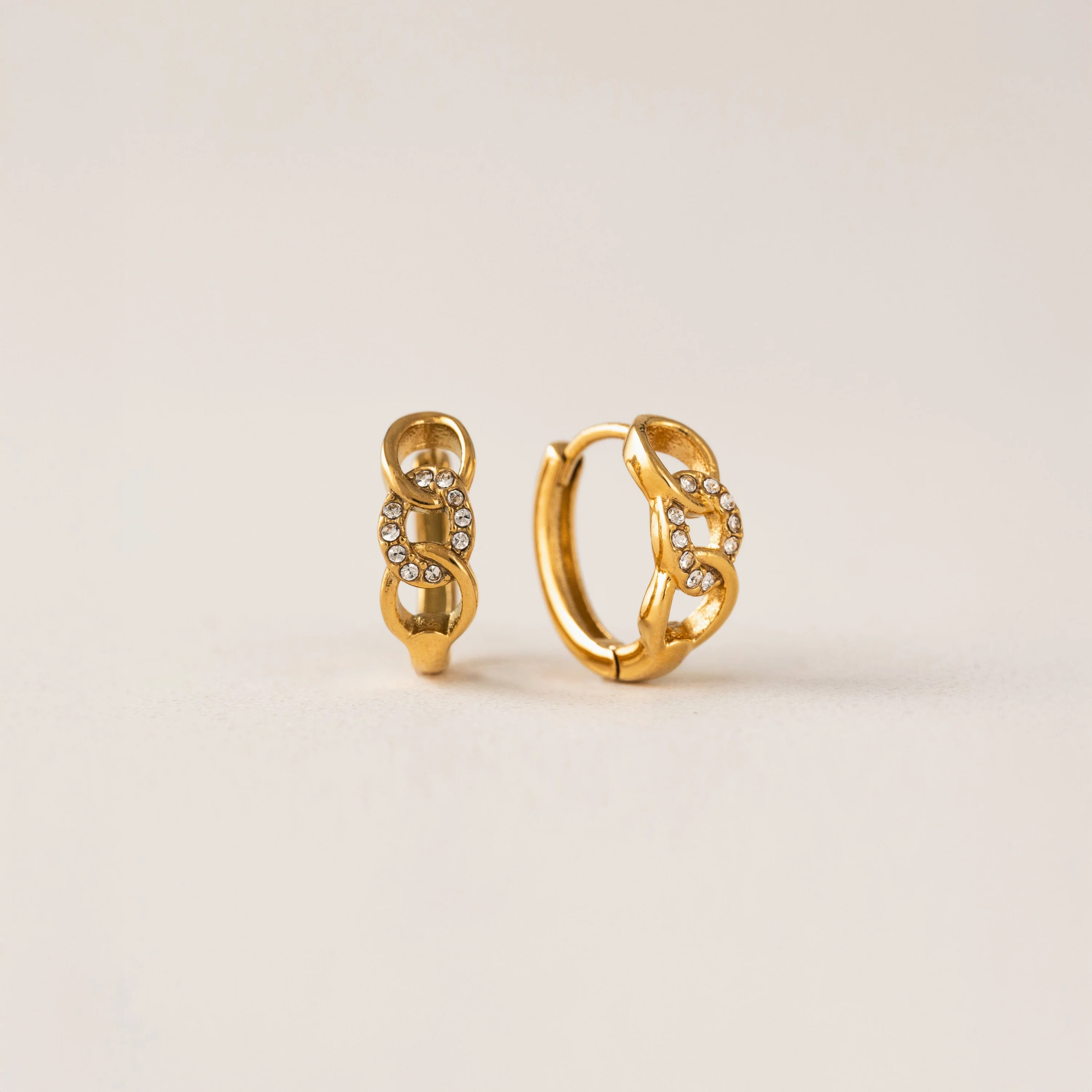 Chain link meets sparkle - perfect for adding an edgy elegance to any look. Brilliant cubic zirconias set in sleek stainless steel & 18K Gold-PVD.