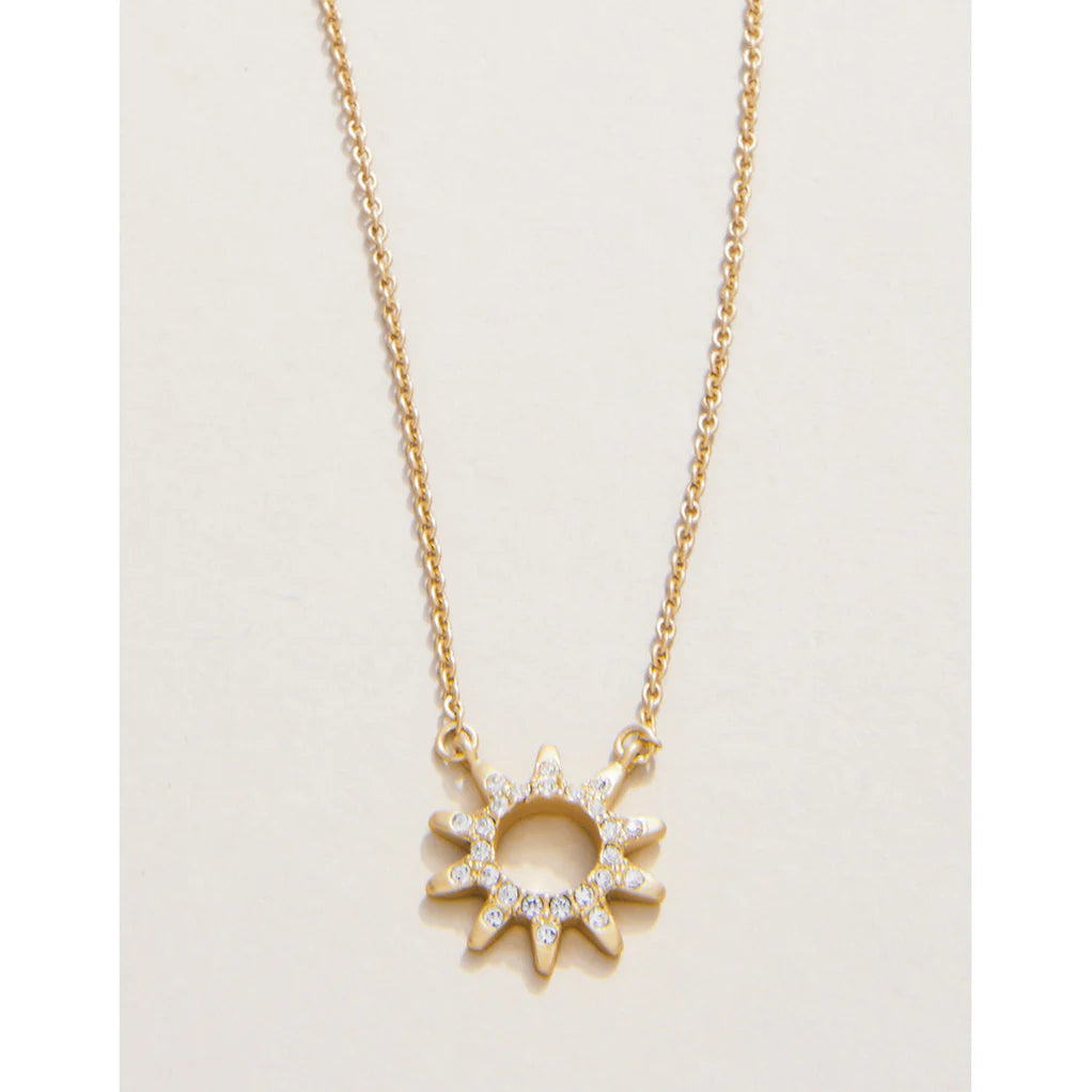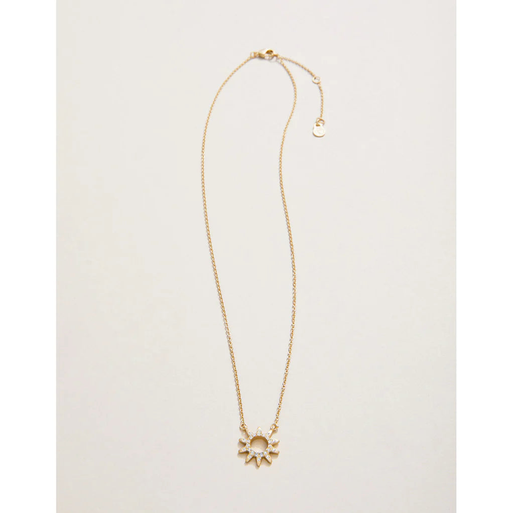 Let this Spartina 449 Sunshine Sun Necklace be a symbol of boundless affection. Adorned with a glass crystal studded charm in the shape of the sun, this unique jewelry is thoughtfully enclosed in an exquisite box bearing the words: "Like a ray of light, you are my sunshine. Warm, radiant and wonderful, you bring me such joy and happiness. I love you unconditionally. Forever."