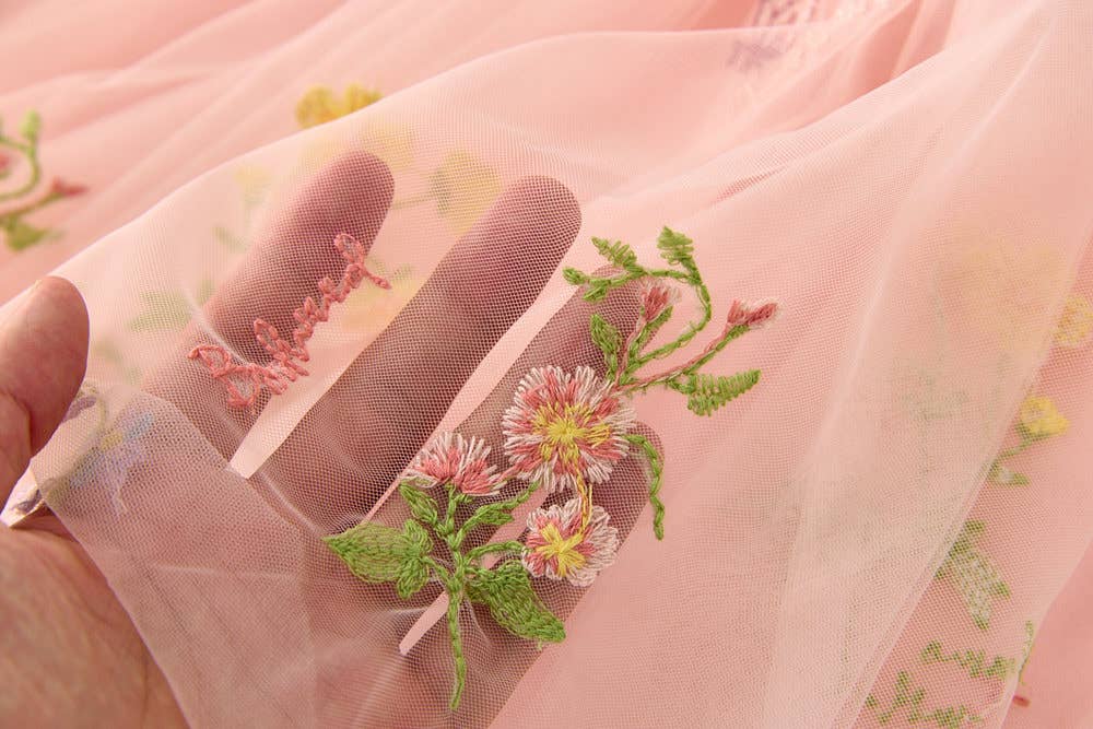 Girls Floral Embroidery Mesh Dress With Butterfly Wings Pink
