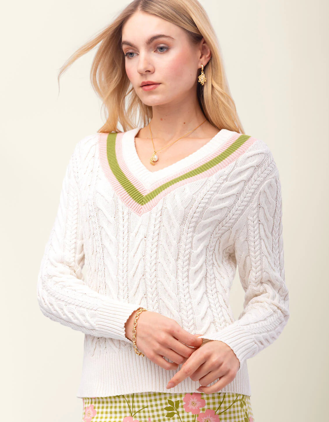 Made of long-lasting cotton, our Lorna Varsity Sweater is where sporty meets preppy in a soft, comfortable knit. Layer over a collared top or wear on its own.