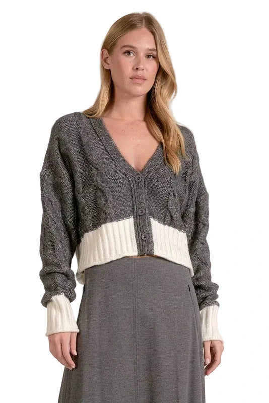 Elan Carrie Sweater Cardigan 2-tone Grey White