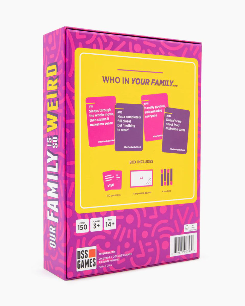 - Are you ready to call out your family at game night? Our Family Is So Weird will have you cast your vote on hilarious prompts like who in your family #73 has no filter or #60 could fall asleep anywhere