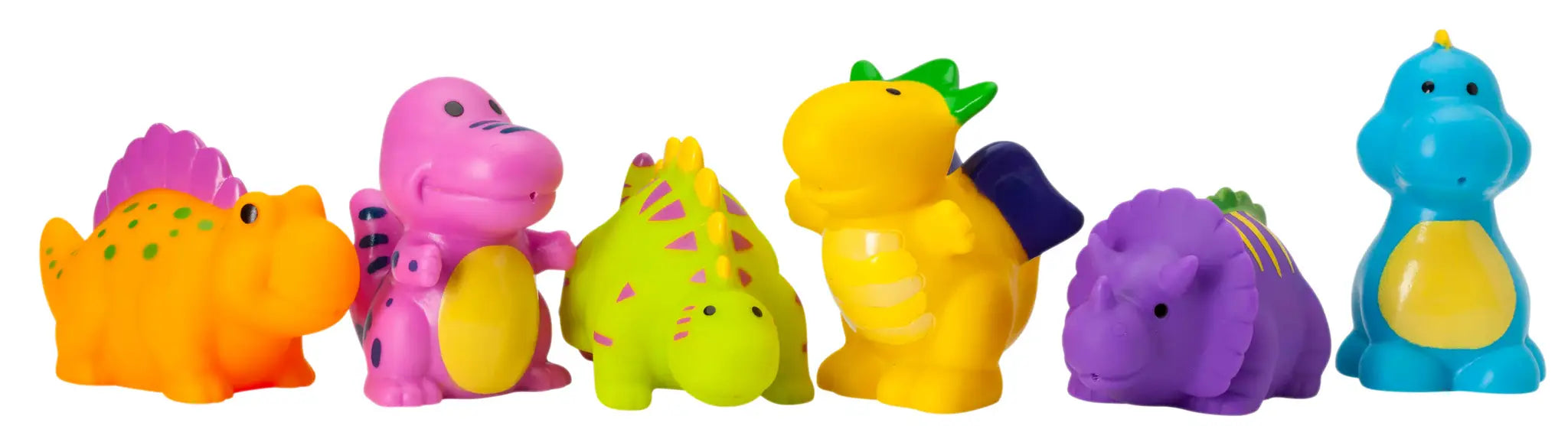 Get ready for lots of fun in the tub. Now, the party doesn't have to end when it's bath time for your little one! They're perfect for beach and pool time as well because our Party Squirtie Sets float and squirt water! Every baby explorer will love visiting prehistoric times with our Dinosaur Party Squirties pack, which includes a Stegosaurus, Dimetrodon, Triceratops, T-Rex and more.