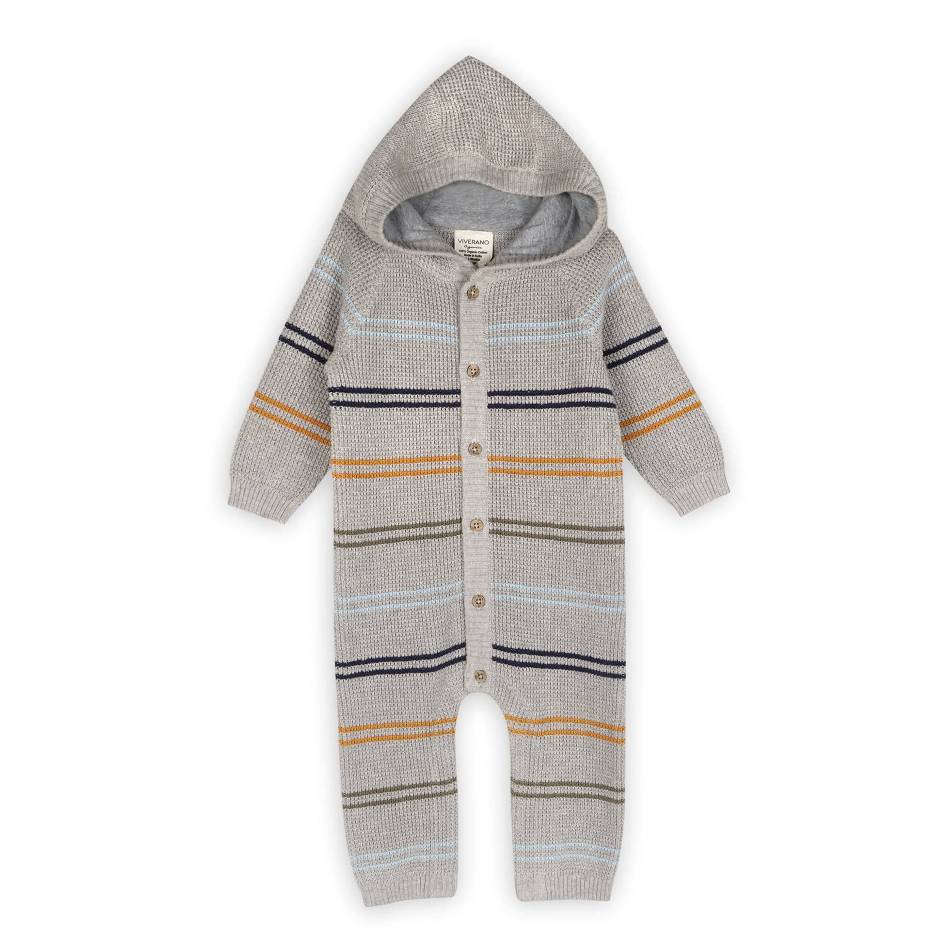 Viverano Organics - Classic Stripe Sweater Knit Baby Hooded Jumpsuit